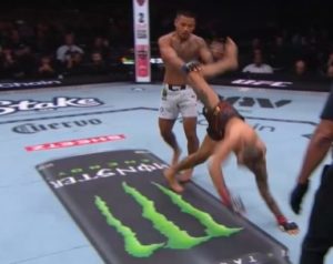 その前にパントージャはヴァンに右ハイキックをやっており、ジョシュアヴァンはこれをムエタイファイターのように左首下で掴み投げてしまったのでした。