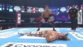 恐れていたのは柔道技に逃げることだったのですが、最後のサブミッション(上掲画像)に移行する前の腕ひしぎが柔道っぽくて嫌だったのを除けば、概してアーロンウルフはプロレスをやっていたと思います。