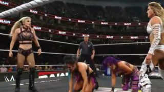 後ろでコーナーポストに上って悔しがっているのがジュリア。チェルシーグリーンはこれで、AAAの男女混交タッグ王座(肩車しているイーサンペイジと)に加え、シングルタイトルを得て、アンダードッグキャラから一気に中心人物に成りあがった。(出典:WW...