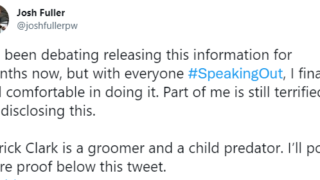 ジョシュフラー(Josh Fuller),約2年前, 2020/6/20のツイート.”#SpeakOutムーブメントのペドフィリアバージョンだとおもってくれ!ボクは, まだこれをするのに,ベルベッティーンドリームからの恐怖を感じている!ベル...