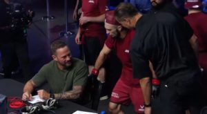 試合後の花道でUFCのお偉方(マッチメーカー)に