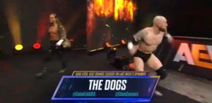 今回Dynamiteで元々、ゲイブキッド&クラークコナーズ(TheDogs=上掲画像)が、オレンジキャシディ&ダービーアレンと試合をしていました。