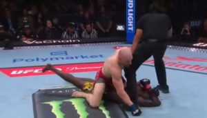 2R最後にアデサニヤは、パイファのグラップリングとパウンドに沈みましたが(上掲画像)、本当にあと一息で勝利を掴めるところでした。