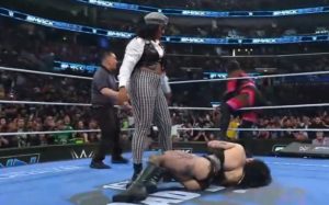 介入したのはナイアジャックス&ラッシュレジェンドで、彼らはリアリプリー&イヨスカイのタッグ王座を狙っているわけですが、このアングルが拡大された形になります。