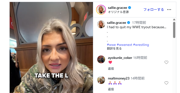 出典:SallieGraceのインスタ投稿
