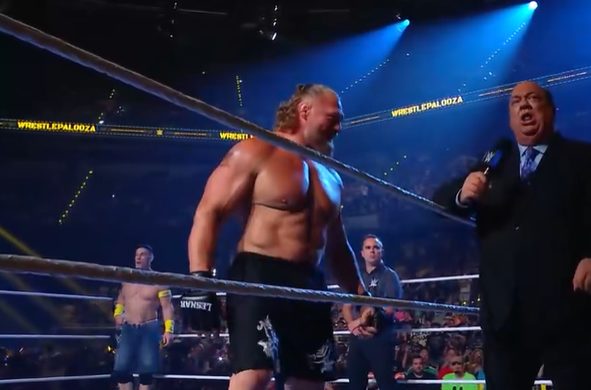 ブロックレスナーの紹介に突如ポールヘイマンが現れた。